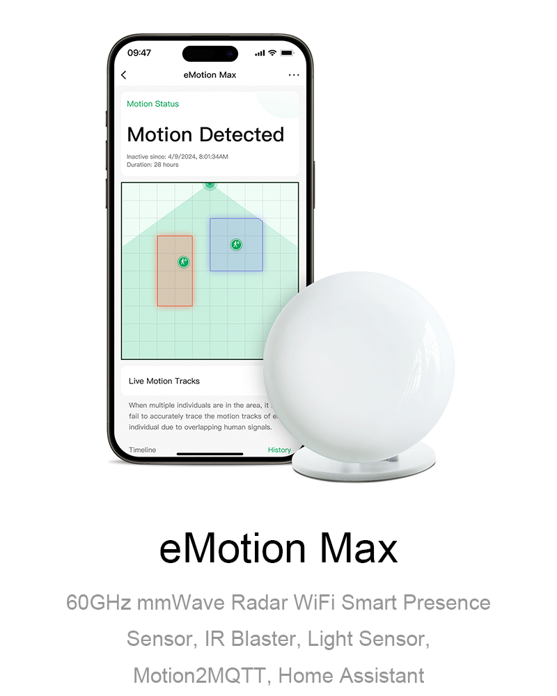 Upgraded from PIR sensors to the eMotion Pro and it’s a game-changer. Detects me sitting perfectly still at my desk, so my office lights never shut off mid-meeting. The Motion2MQTT setup was seamless with Home Assistant—now my AC adjusts automatically when I enter the room. Excited for the future IR updates to control my TV!