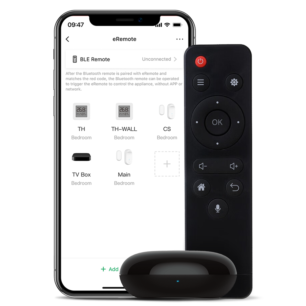 Easiest TV control from the comfort of your couch with BLE Remote connects to eRemote via Bluetooth. 360° signal coverage up to 40 feet.