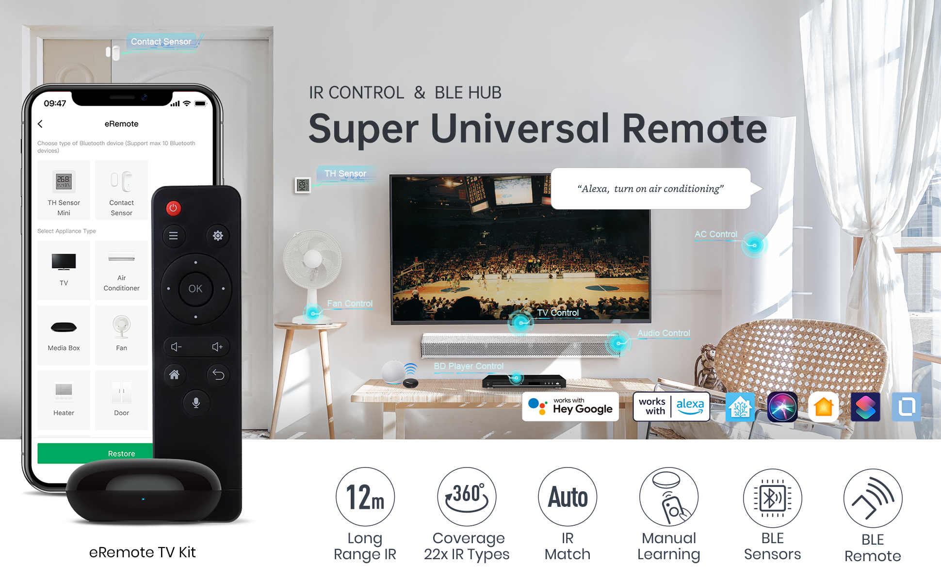 eRemote works with a wide variety of brands and devices, making it the perfect universal remote for your home. Transform your traditional appliances into smart ones.