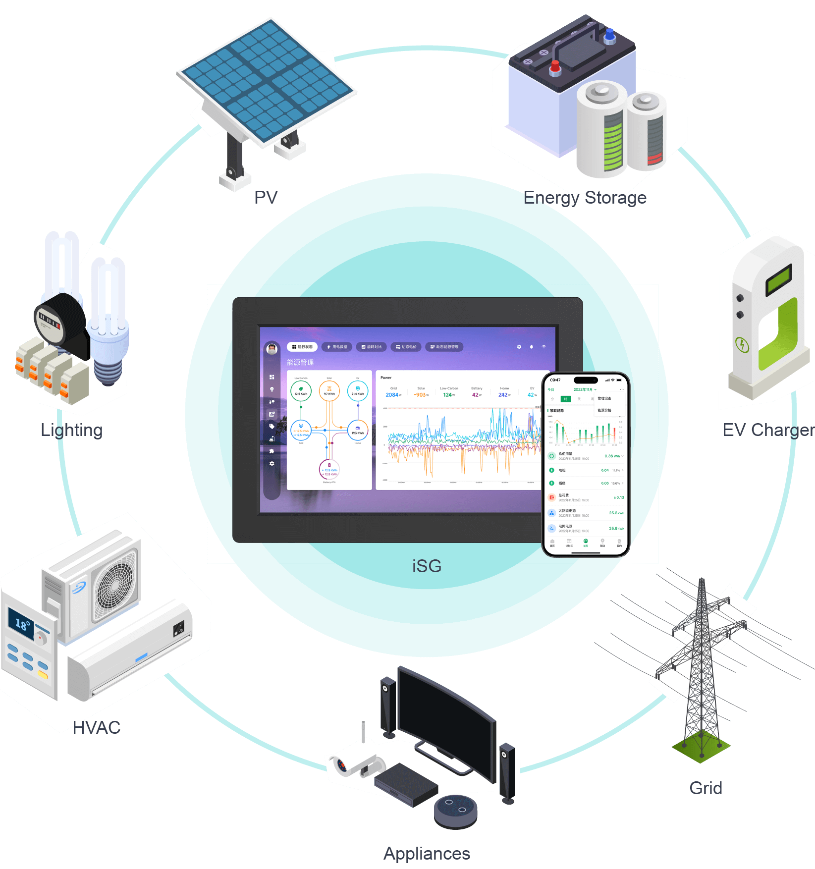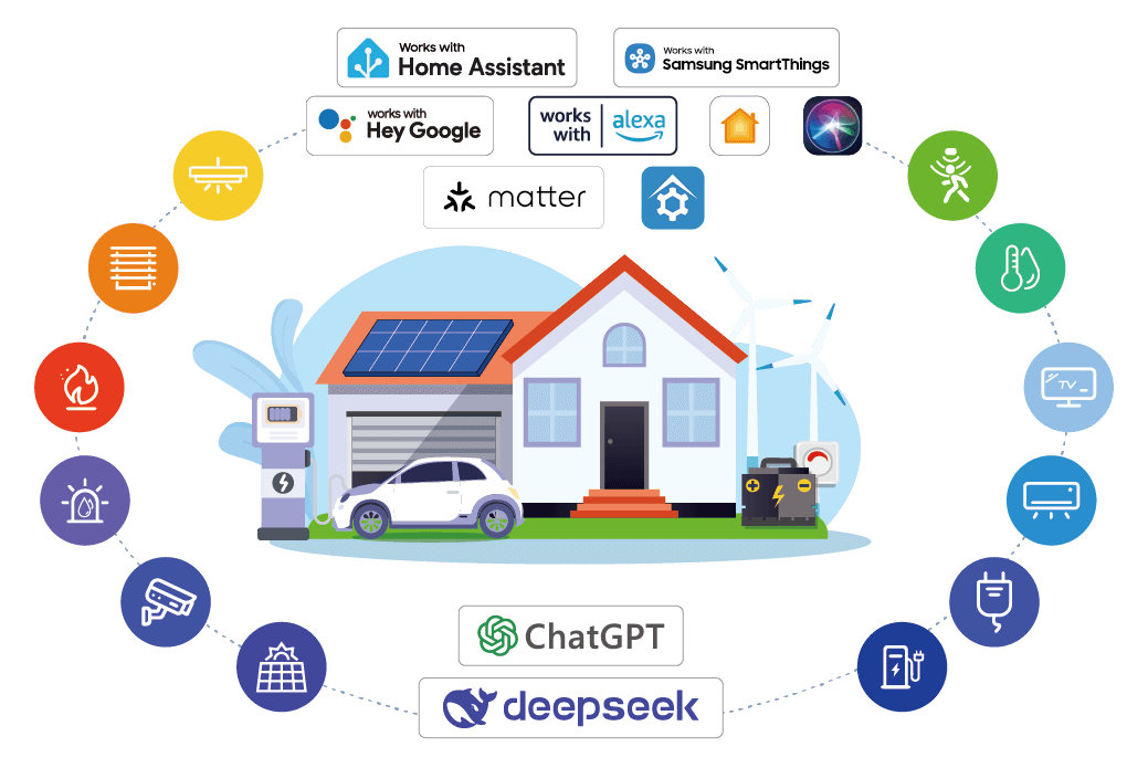iSG builds an open and interconnected smart home ecosystem. Deeply integrated with Home Assistant, iSG is compatible with mainstream smart devices on the market. Whether it's adjusting lights, controlling temperature, or managing security, it enables full-house intelligent linkage. AI algorithms optimize energy usage, making your home life smarter, more convenient, and more energy-efficient.